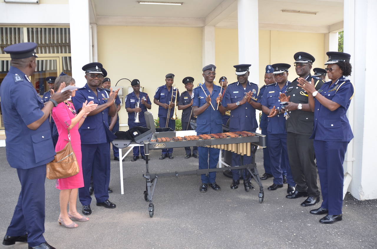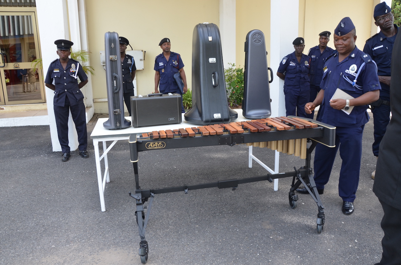 Receiving the instrument on behalf of the Ghana Police Central Band at the Police Headquarters in Accra, the IGP Mr. David Asante-Apeatu thanked the embassy and Goethe Institute for the gesture.