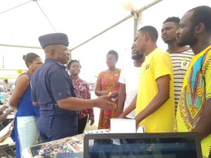 The fair whose main objective was to inform and educate the youth on career or job opportunities within various organizations, took place on July 27, 2019, at the Tema community 4 Presco Park. The police used the occasion not only to inform the youth on opportunities existing in the Service but also to educate the youth on police activities and crime prevention in our society.