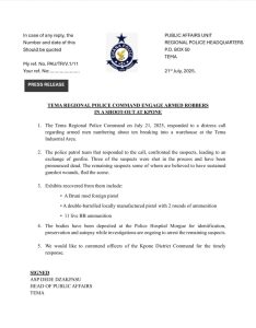 TEMA REGIONAL POLICE COMMAND ENGAGE ARMED ROBBERS IN A SHOOT-OUT AT KPONE