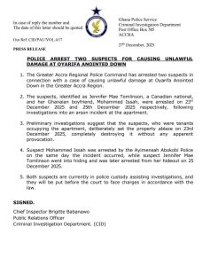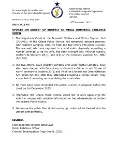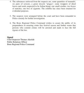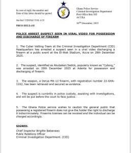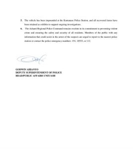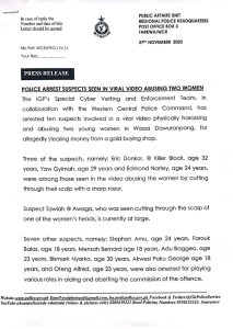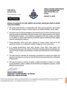 POLICE STATEMENT ON THE ARREST OF DANIEL ADOMAKO, PRINCE OFORI, AND TWO OTHERS