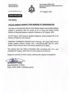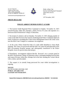 POLICE ARREST SUSPECT FOR MURDER AT KWESIMINTIM