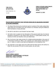 POLICE REFUTE REPORTS THAT OFFICER INVOLVED IN ABLEKUMA INCIDENT IS FACING DISMISSAL