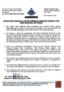 UPPER WEST REGIONAL POLICE COMMAND ARRESTED A SUSPECT FOR BABY STEALING AND THEFT