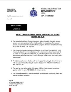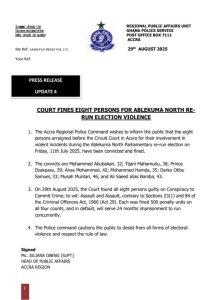 COURT FINES EIGHT PERSONS FOR ABLEKUMA NORTH RE-RUN ELECTION VIOLENCE