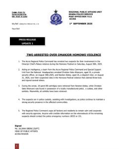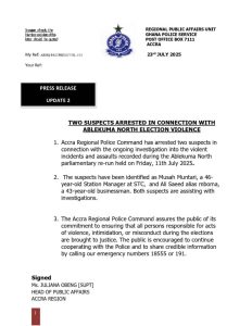 TWO SUSPECTS ARRESTED IN CONNECTION WITH ABLEKUMA NORTH ELECTION VIOLENCE