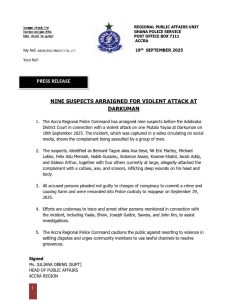 NINE SUSPECTS ARRAIGNED FOR VIOLENT ATTACK AT DARKUMAN