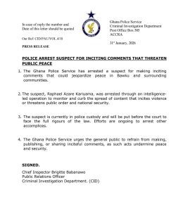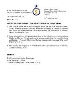 ONE SUSPECT ARRESTED FOLLOWING A PETITION ON FALSE GALAMSEY CLAIMS