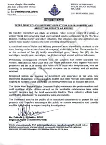 UPPER WEST POLICE INTENSIFY OPERATIONS AFTER ROBBERY AND ABDUCTING REPORTS AT KENDEU