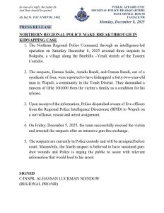 NORTHERN REGIONAL POLICE MAKE BREAKTHROUGH IN KIDNAPPING CASE