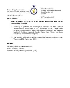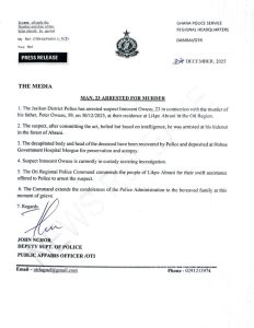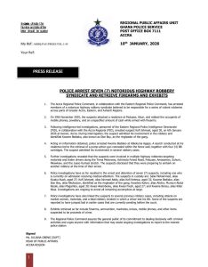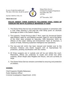 POLICE ARREST SUSPECT IN CONNECTION WITH SERIES OF TAXI DRIVER ROBBERIES AND MURDERS IN GREATER ACCRA