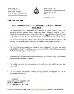 POLICE INVESTIGATES FIVE (5) SUSPECTS POSING AS NAIMOS OFFICIALS