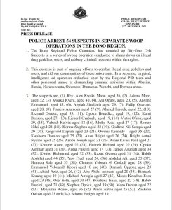POLICE ARREST 54 SUSPECTS IN SEPARATE SWOOP OPERATIONS IN THE BONO REGION