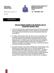 POLICE ARREST SUSPECT ON WANTED LIST AT DIAPORA SUMMIT 2025