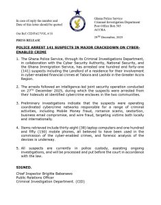 POLICE ARREST 141 SUSPECTS IN MAJOR CRACKDOWN ON CYBER-ENABLED CRIME