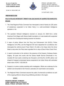 VOLTA POLICE INTERCEPT TWENTY-SIX (26) SACKS OF SUSPECTED NARCOTIC DRUGS