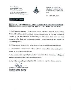 FIVE (5) ACCUSED PERSONS CONVICTED AND REMANDED INTO PRISON CUSTODY IN CONNECTION WITH THE ASSAULT OF A KADE SHTS TUTOR