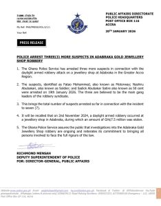 POLICE ARREST THREE (3) MORE SUSPECTS IN ADABRAKA GOLD JEWELLERY SHOP ROBBERY