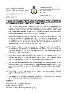 POLICE INVESTIGATE VIRAL VIDEO OF ARIANNA NAOMI MACKEY, AN AMERICAN CITIZEN, ALLEGEDLY KIDNAPPED AND ROBBED BY PERSONS PURPORTED TO BE POLICE OFFICERS