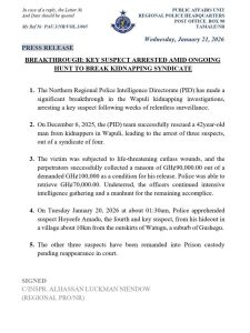 BREAKTHROUGH: KEY SUSPECT ARRESTED AMID ONGOING HUNT TO BREAK KIDNAPPING SYNDICATE