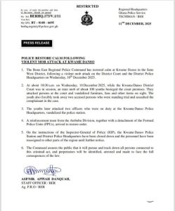 POLICE RESTORE CALM FOLLOWING VIOLENT MOB ATTACK AT KWAME DANSO
