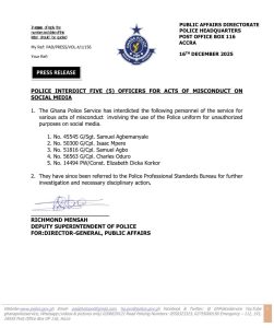 𝐆𝐇𝐀𝐍𝐀 𝐏𝐎𝐋𝐈𝐂𝐄 𝐒𝐄𝐑𝐕𝐈𝐂𝐄 𝐈𝐒𝐒𝐔𝐄𝐒 𝐃𝐈𝐒𝐂𝐋𝐀𝐈𝐌𝐄𝐑 𝐎𝐍 𝐅𝐀𝐊𝐄 𝐑𝐄𝐂𝐑𝐔𝐈𝐓𝐌𝐄𝐍𝐓.