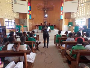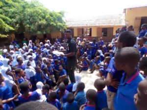 On Wednesday, 24th July 2019, the Public Relation’s Office of the Central Regional Police Command held a school sensitization program for basic schools within Cape Coast North Metropolis on crime prevention at Saint Lawrence Catholic Church, Abura. The participants for the occasion were pupils and teachers from Saint Lawrence Catholic Basic School, Kakumdo M/A Basic School, Abura TI Ahmadiyya Basic School, Nkanfoa Saint Paul Basic School, and Pedu M/A Basic Shool.320 pupils and 50 teachers reported for the program.